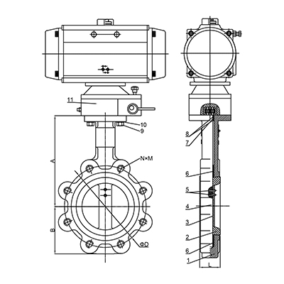 FO1-BV1LT-3P (Luga nga klase nga Butterfly Valve – Pneumatiko Actuator)