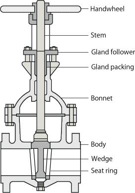 Regardless of type, all valves have the following basic components: body, bonnet, trim (internal components), actuator and packing. The basic components of the valve are shown in the figure below.